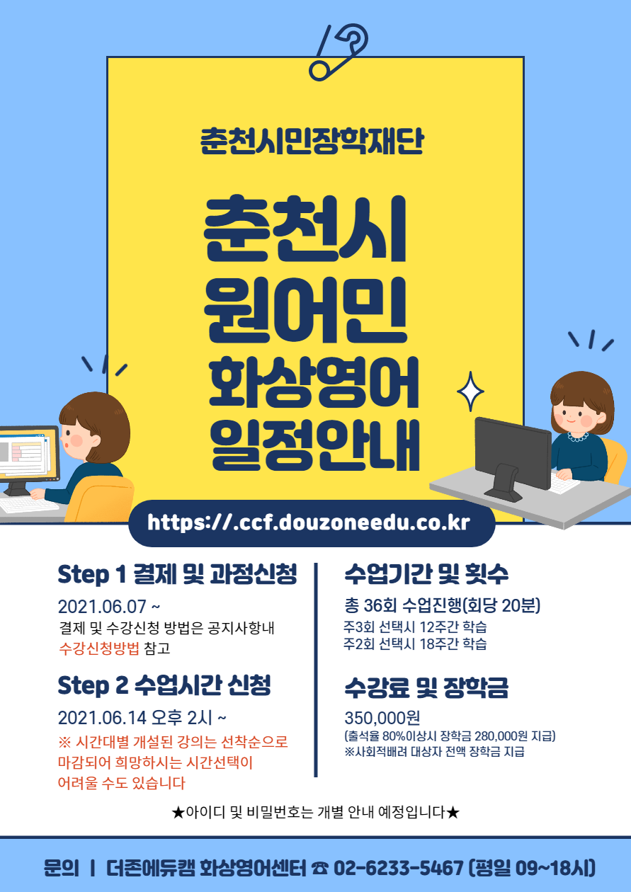 춘천시 원어민 화상영어 운영 일정 안내드립니다